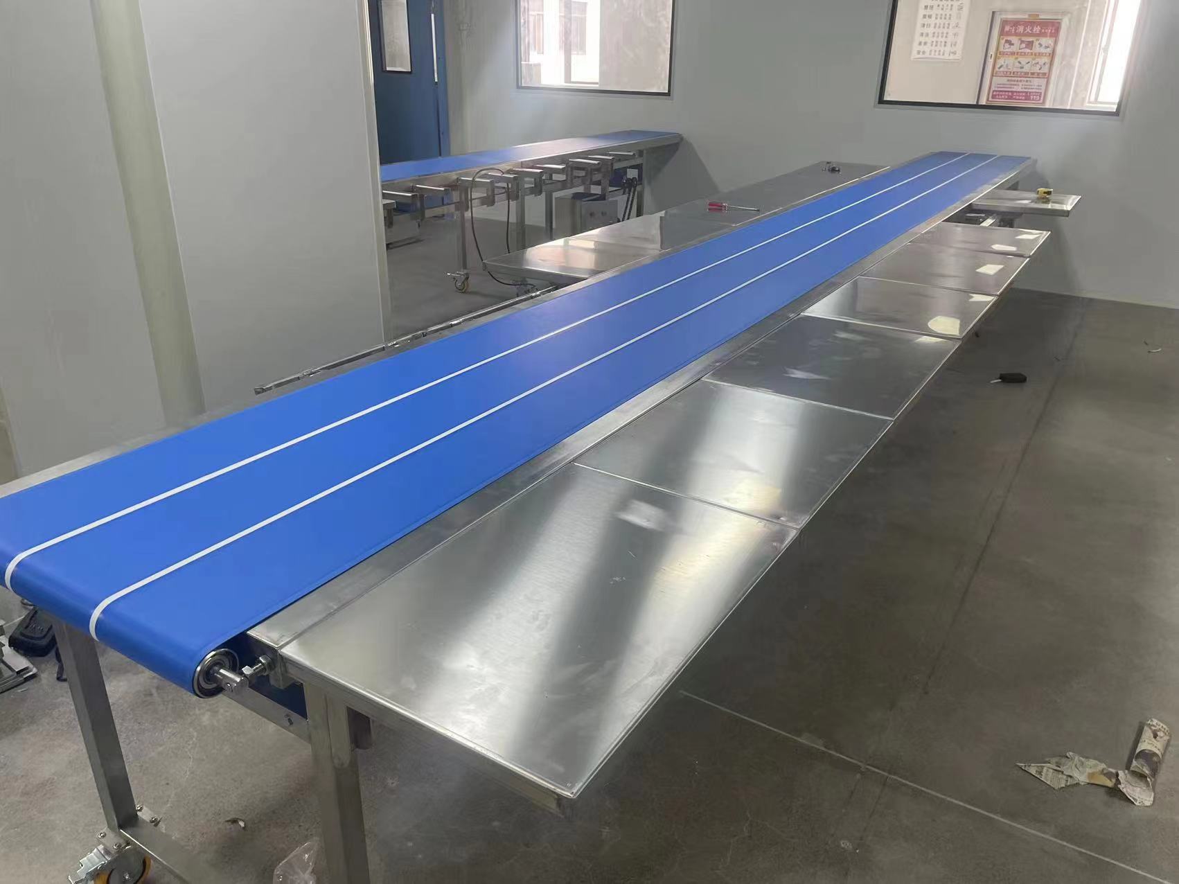 食品輸送機(jī)采用專用的食品級輸送帶,可滿足食品、制藥、日用化工等行業(yè)的要求。輸送帶有橡膠、帆布、PVC、PU等多種材質(zhì),除用于普通物料的輸送外,還可滿足耐油、耐腐蝕、防靜電等有特殊要求物料的輸送。 另外輸送帶上還可以增加推板、側(cè)擋板、裙邊等附件,以滿足不同工藝的要求。